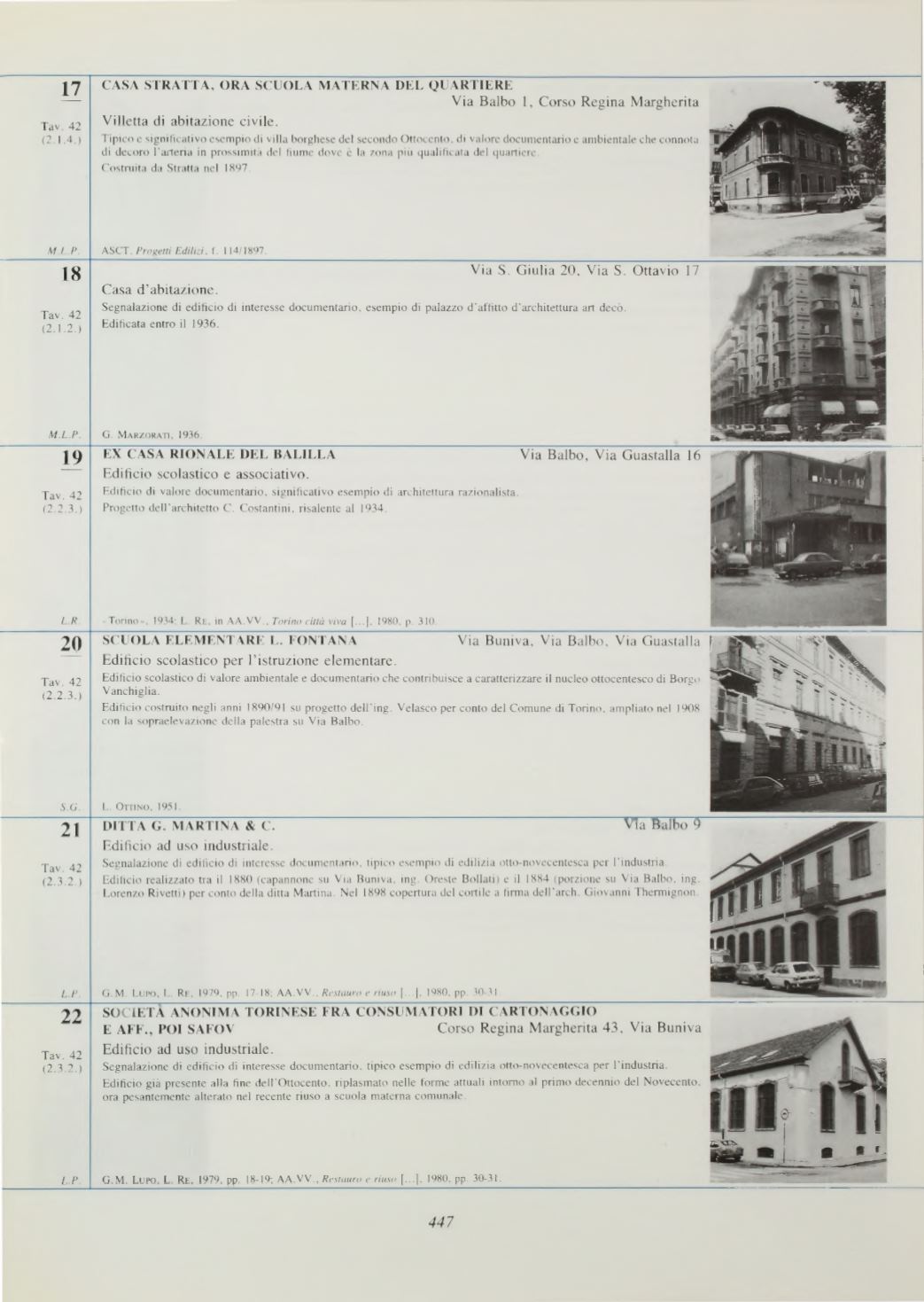 Edificio realizzato tra il 1880 (capannone su Via Buniva, ing. Oreste Bollati) e il 1884 (porzione su Via Balbo, ing.
