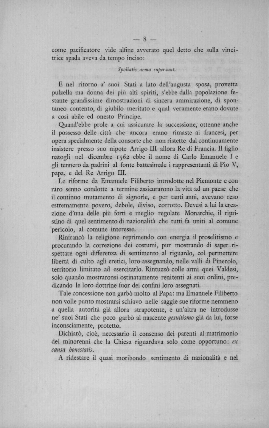T ale concessione non garbò molto al Papa: ma Emanuele Filiberto