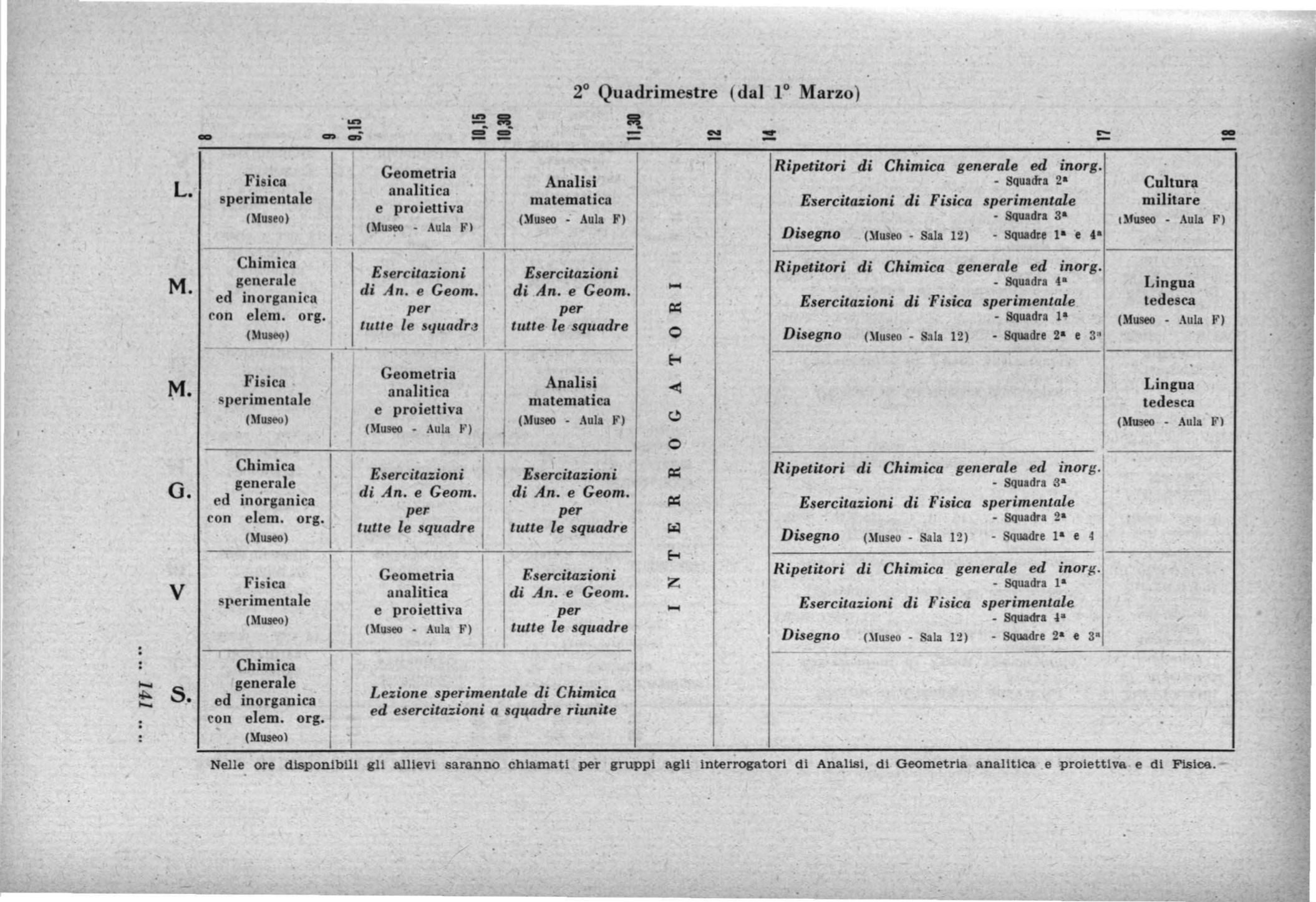 Nelle ore dlsponlblll gli a.lllevl saranno chiamati per gruppi agli Interrogatori di