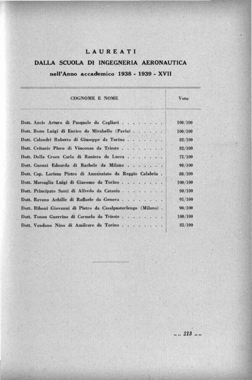 DALLA SCUOLA DI INGEGNERIA AERONAUTICA