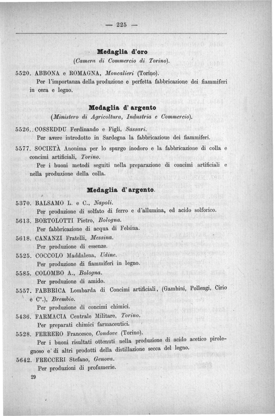 . Per avere int rodotto in Sardegna la fabbricazioue dei fiammiferi.