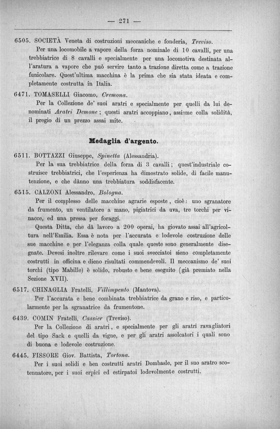 Per la sua trebbiatrice della forza di 3 cavalli; · quest 'industriale co–