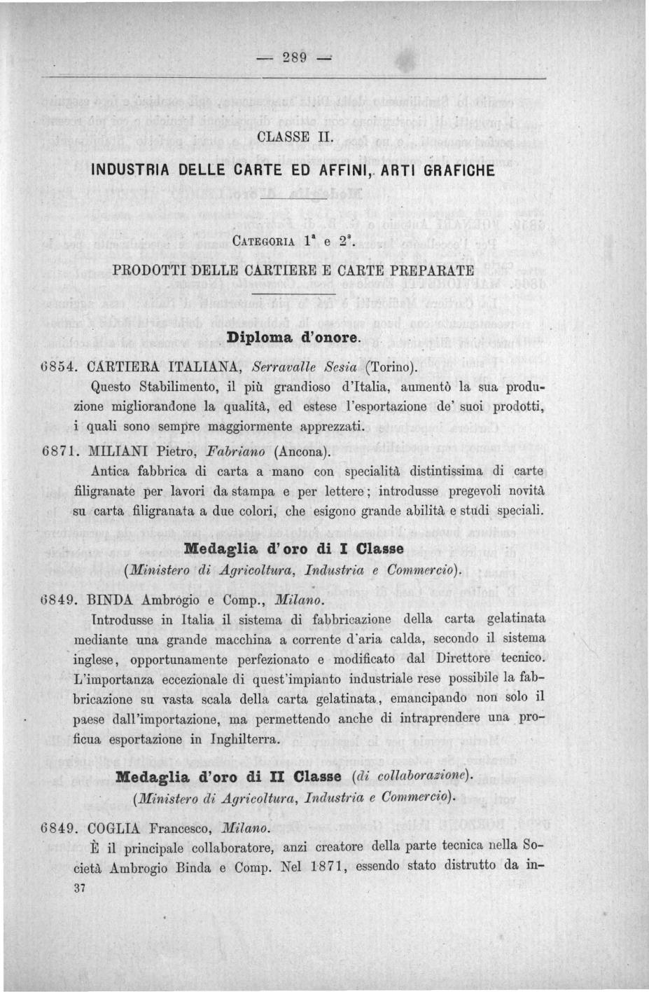 (JJIinistero di Agricoltura, I ndustr ia e Commercio).