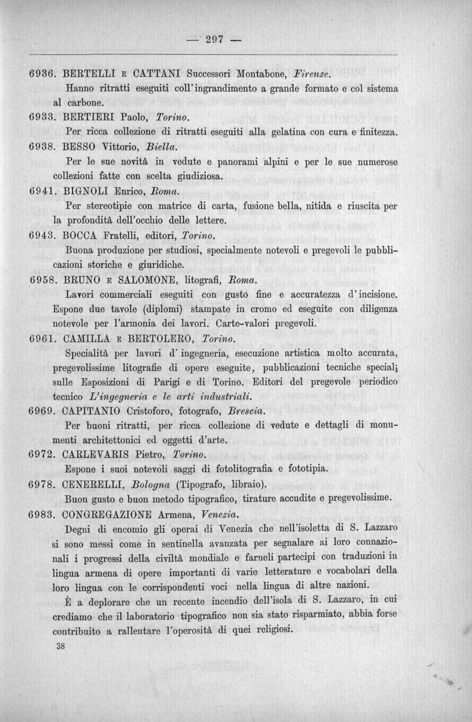 notevole per l'armonia dei lavori. Carte- valori pregev?li.