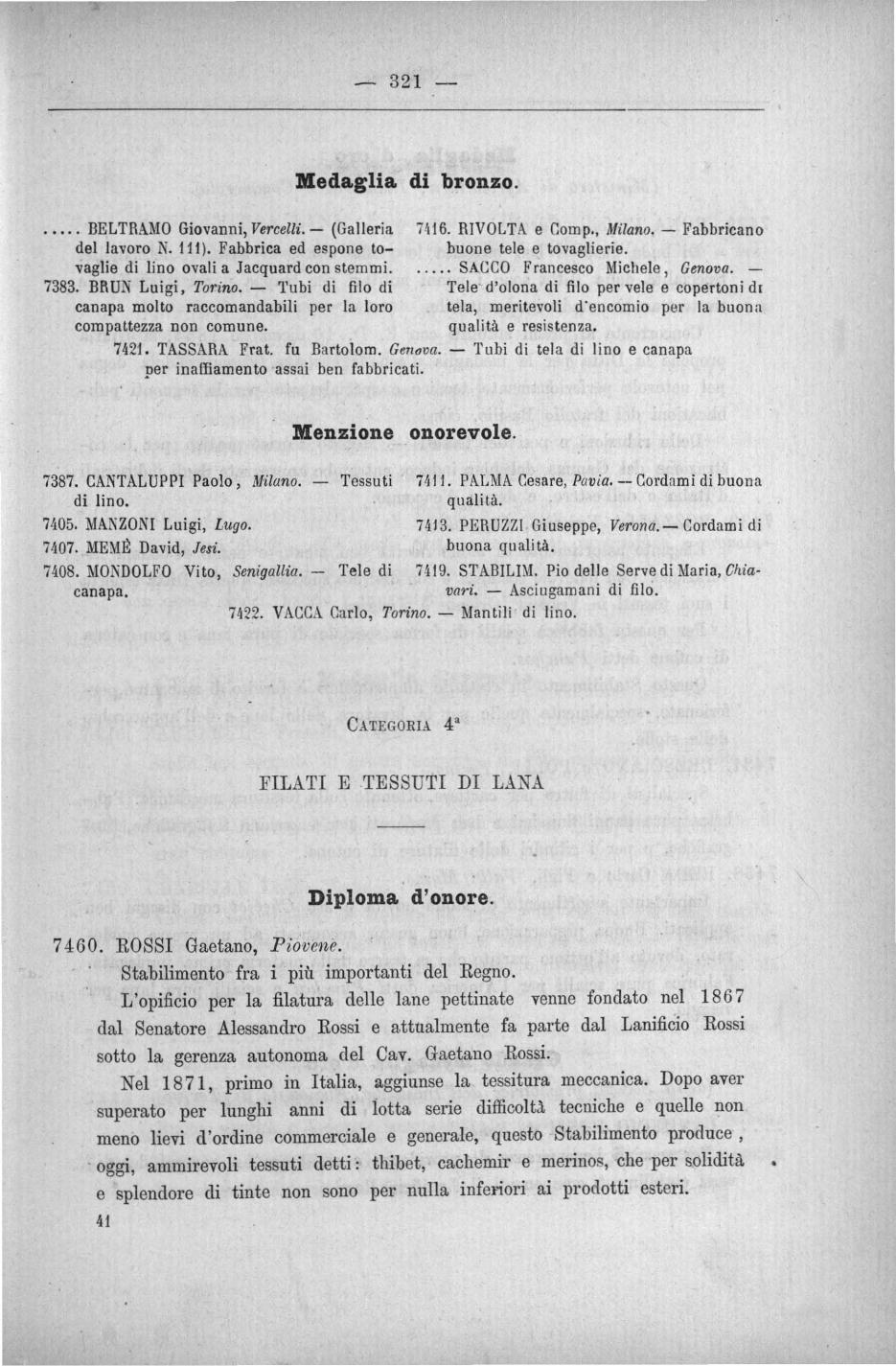 Nel 1871, primo in Italia, aggiunse la tessitura meccanica. Dopo aver