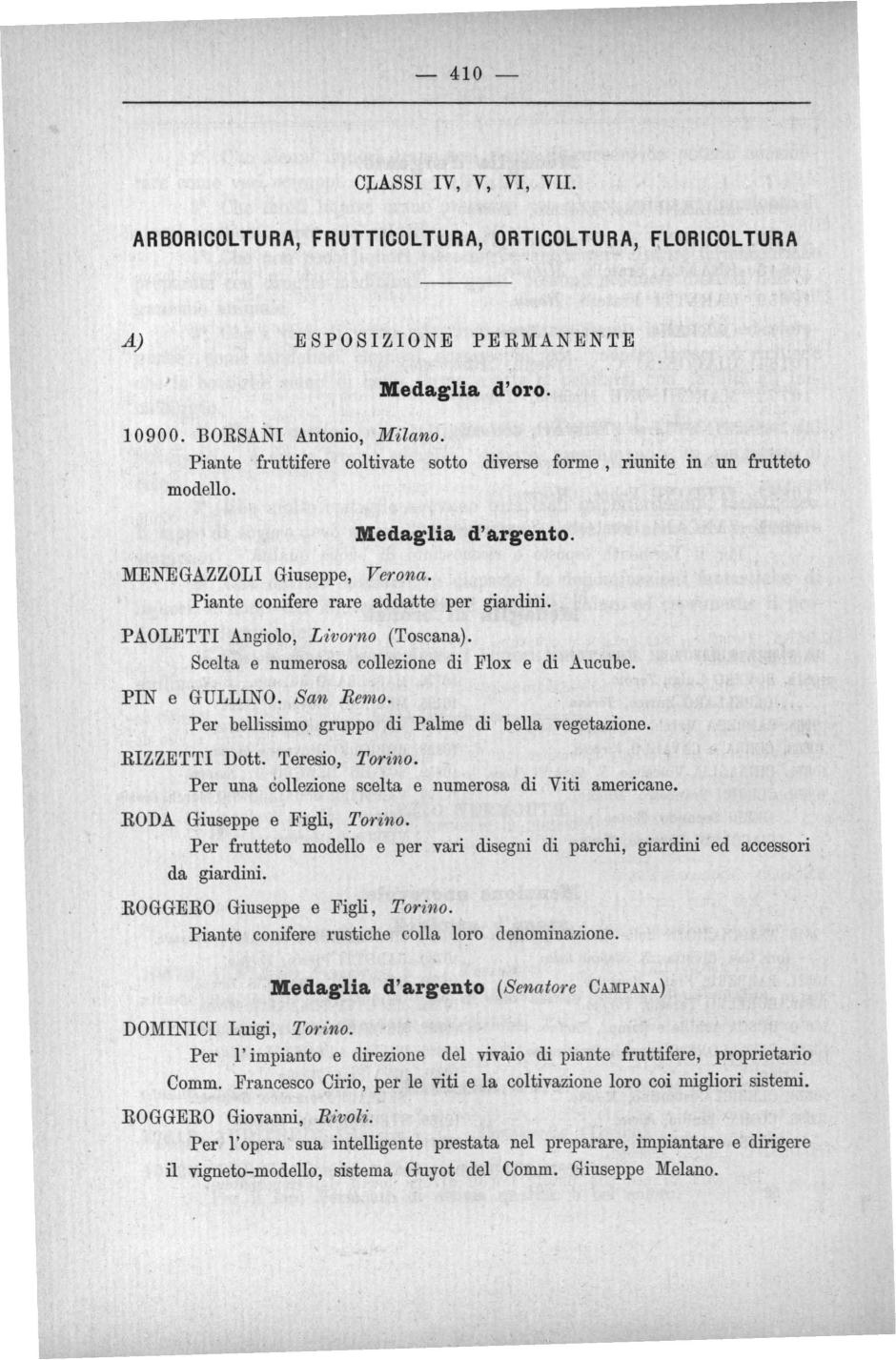 Comm. Francesco Cirio, per le viti e la coltivazione loro coi migliori sistemi.