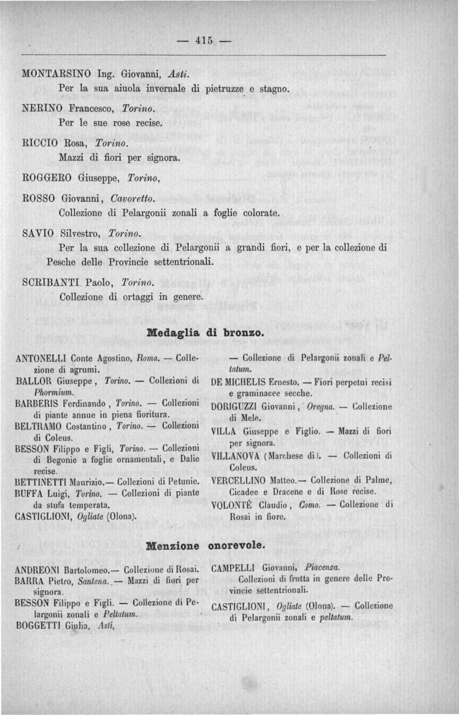 Per la sua collezione di Pelargonii a grandi fiori, e per la collezione di