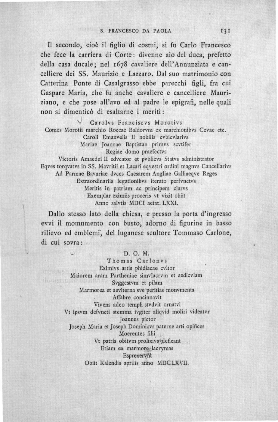 Il secondo, cioè il figlio di costui, si fu Carlo Francesco