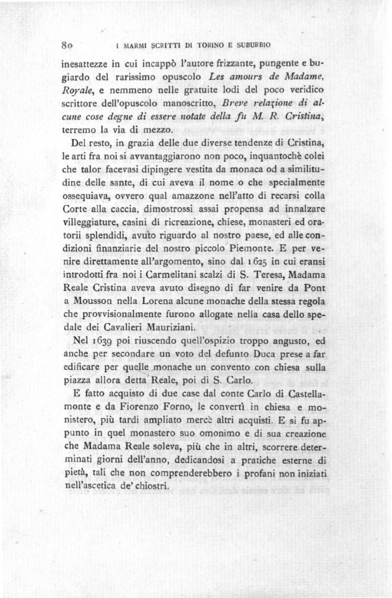introdotti fra noi i Carmelitani scalzi di S. Teresa, Madama