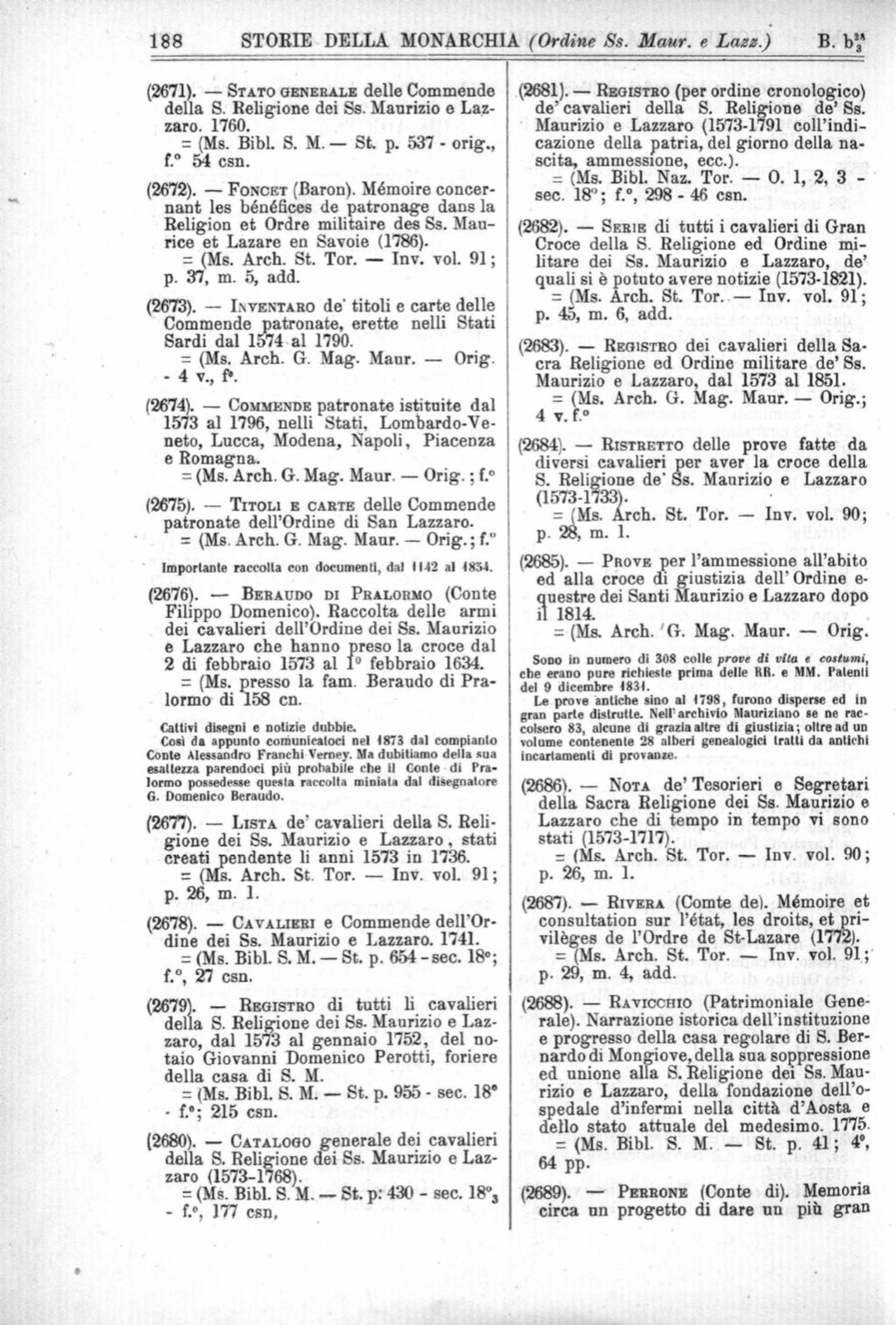 Maurizio e Lazzaro (1573-1791 coll'indi–