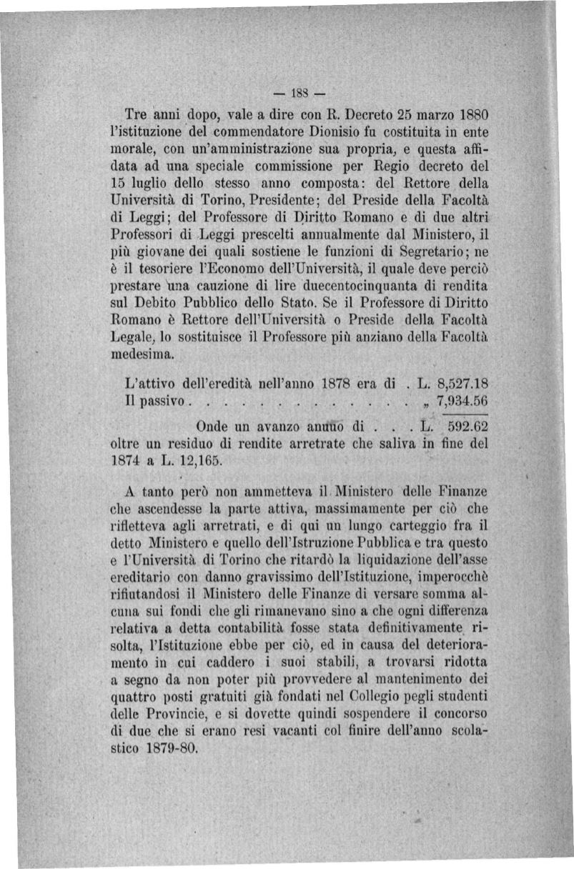 e l'Università di Torino che ritardò la liquidazione dell'asse