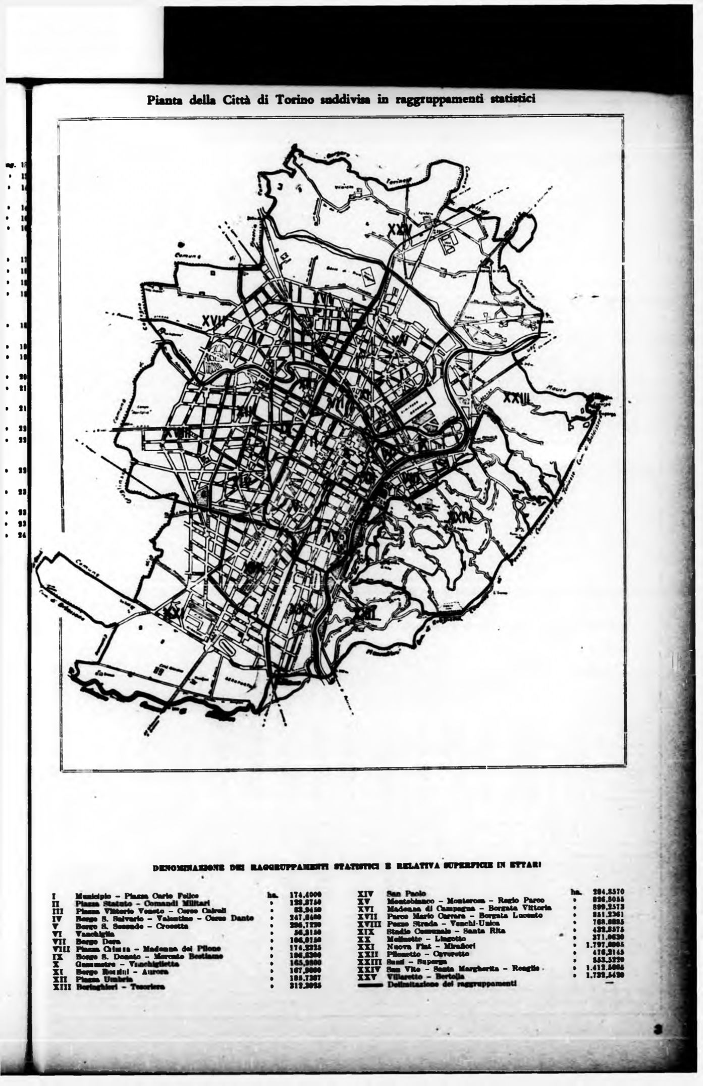 Pianta della Città di Torino suddivisa in raggruppamenti statistici