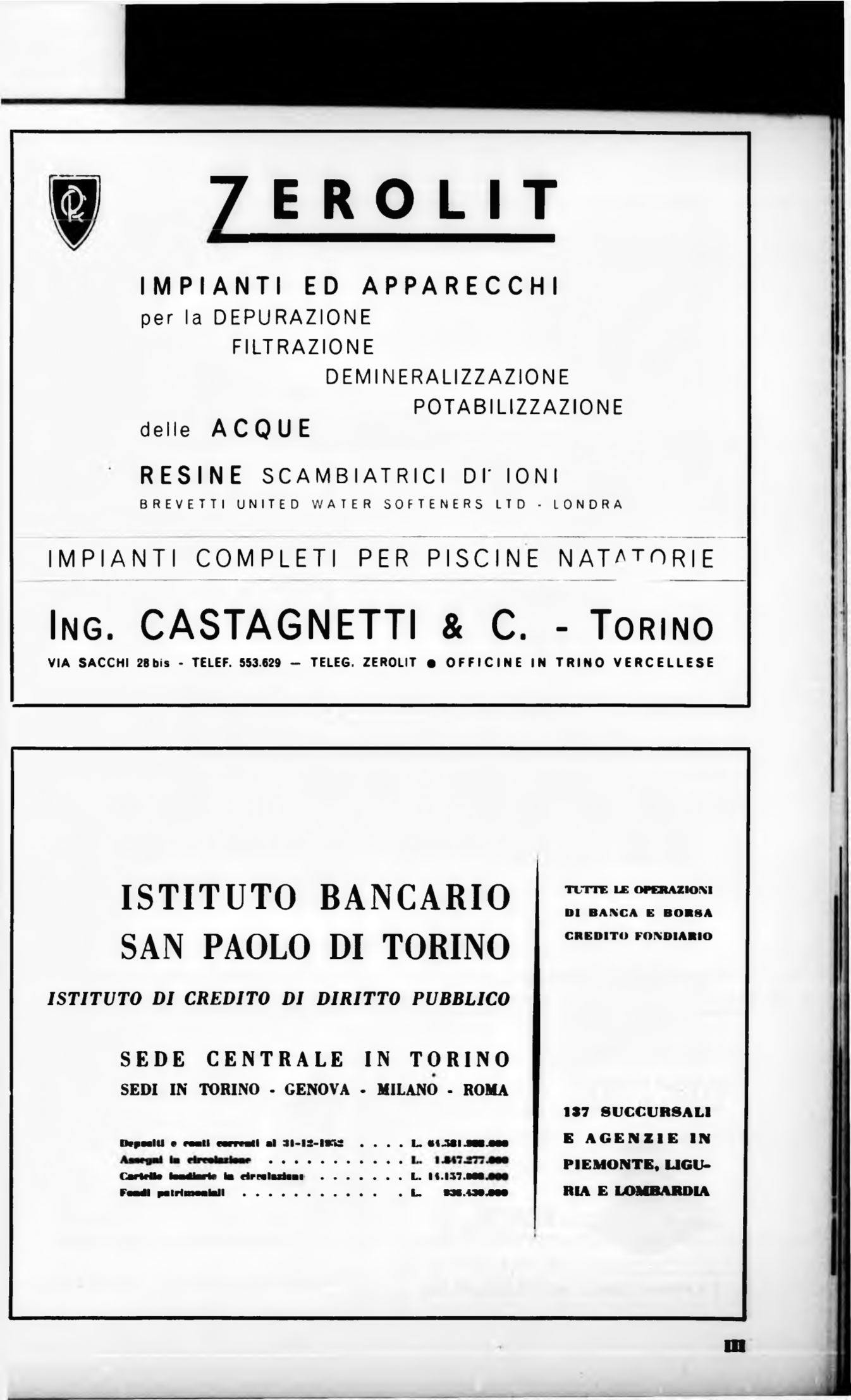 V IA SACCHI 2 8 bis - TELEF. 553.629 - TELEG. ZEROLIT • O F F I C I N E I N T R I N O V E R C E L L E S E