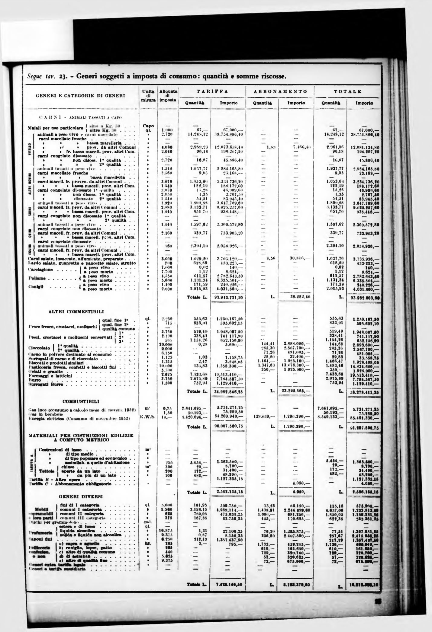 . - Generi soggetti a imposta di consumo : quantità e somme riscosse.