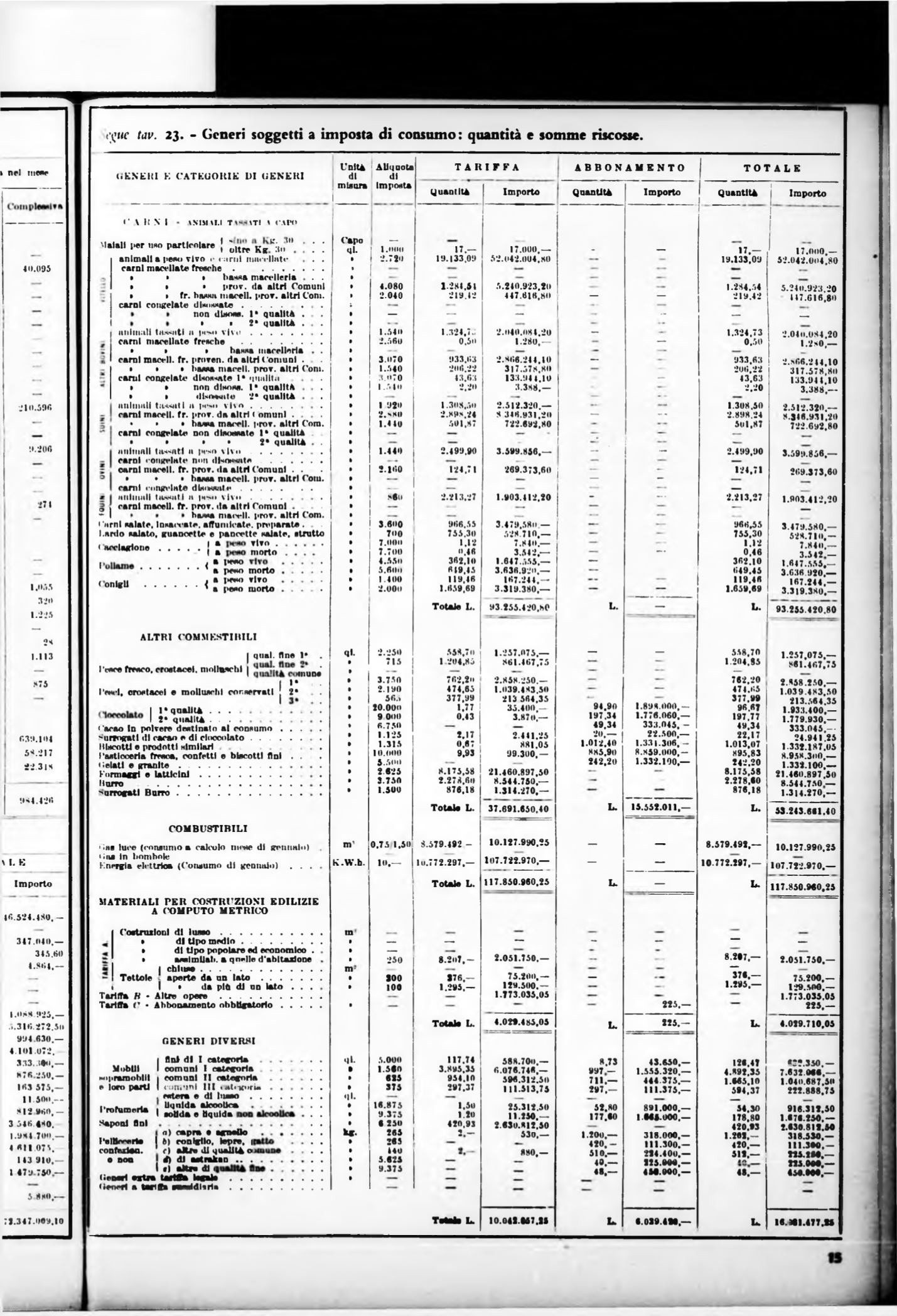 23. - Generi soggetti a imposta di consumo: quantità e somme riscosse.