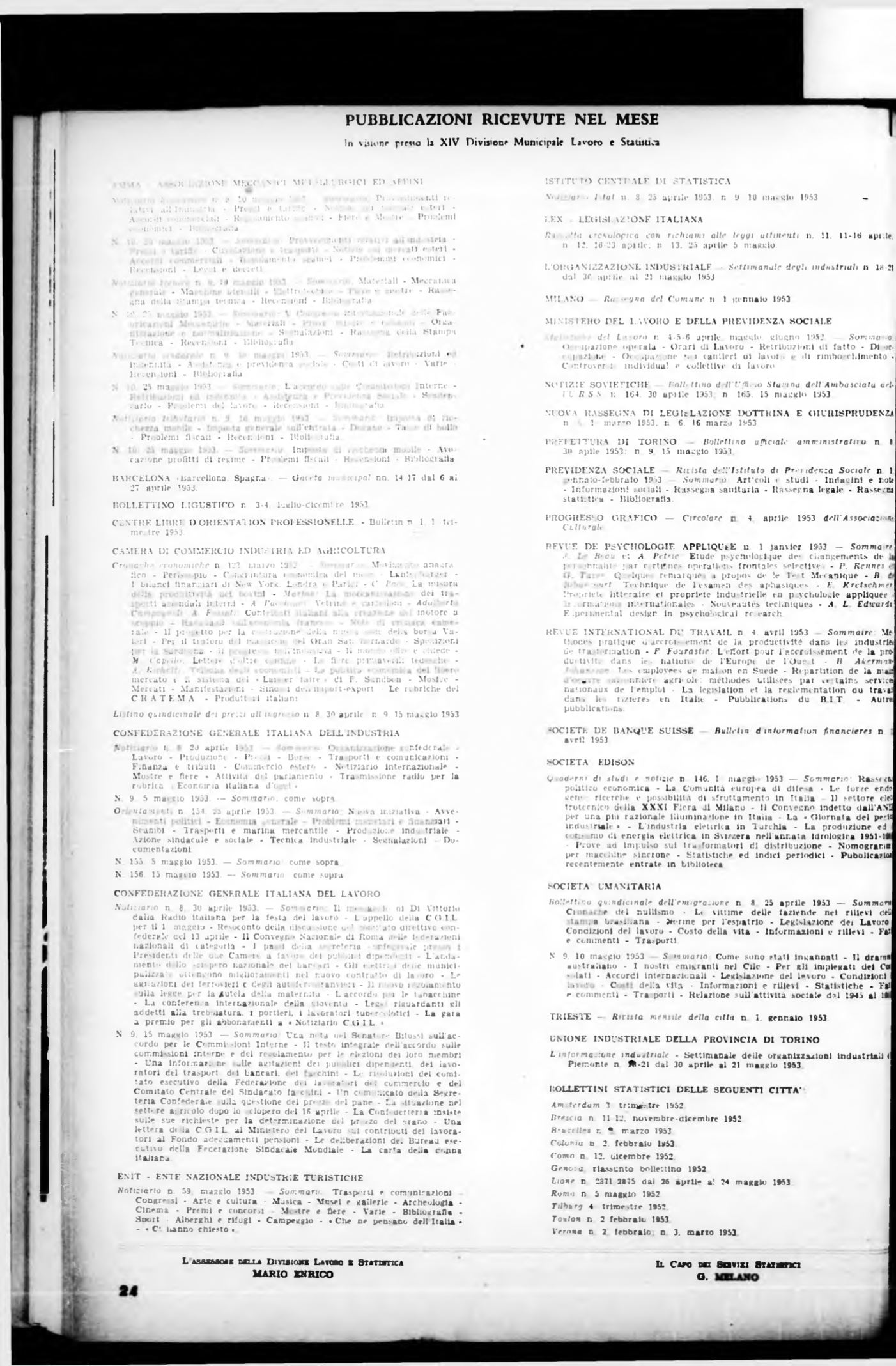 In visione rrr5'° 1* XIV Divisione Municipale Lavoro e Statistica
