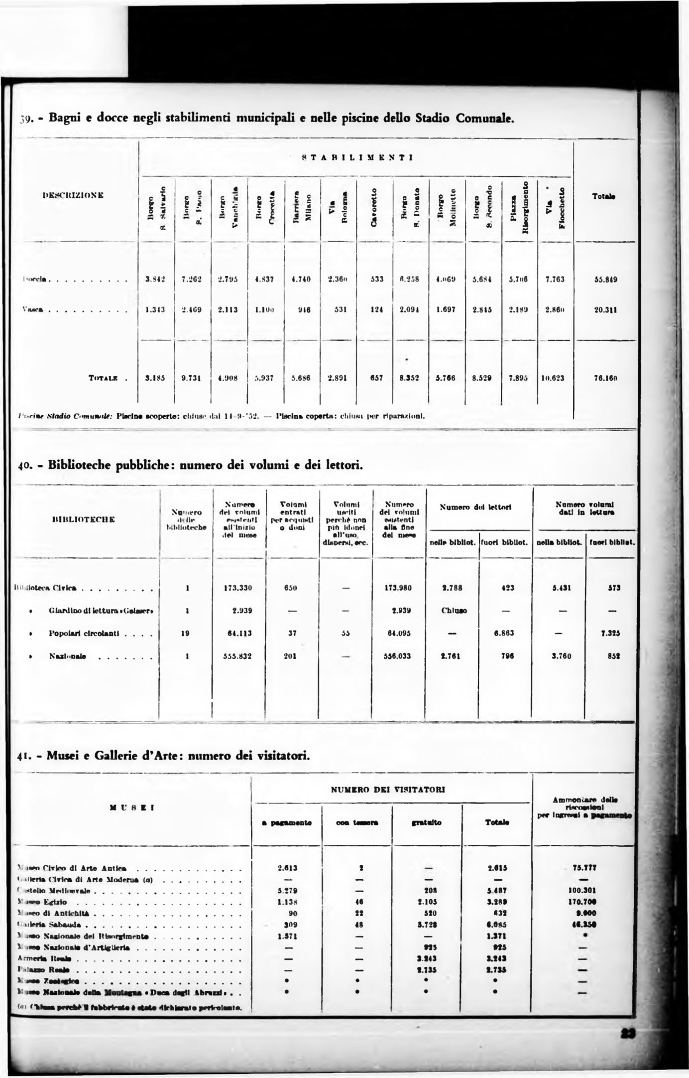 40. - Biblioteche pubbliche: numero dei volumi e dei lettori.