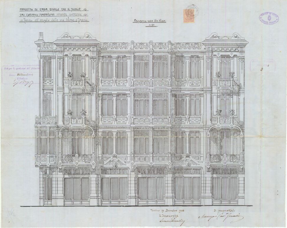 Scheda: Immagine - Tipo: Immagine Palazzo Liberty via Vecellio, 17 Anteprima e Stampa Facciata - progetto edilizio casa Marangoni/Donghi-Parrocchia (ASCT, PE I cat. 1904/3) Autore: ASCT Data di Produzione: 11/05/2023 Tipo Immagine: digital_photo Dimensione: Copyright: ASCT Archivio: ASCT