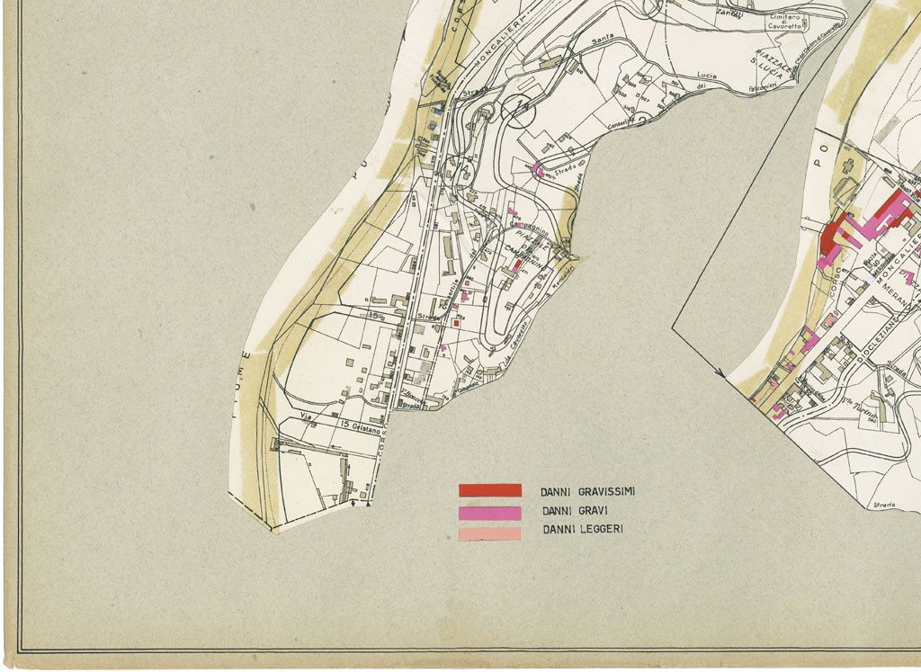Danni arrecati agli stabili 1:5000, 1942-1945. Zona 21: Fioccardo, Alberoni, Pilonetto. ASCT, Tipi e disegni, cart. 68, fasc. 2 disegno 21 – quadrante 3. © Archivio Storico della Città di Torino
