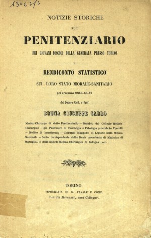 Notizie storiche sul penitenziario dei giovani discoli della Generala presso Torino, e rendiconto statistico sul loro stato morale-sanitario pel triennio 1845-46-47