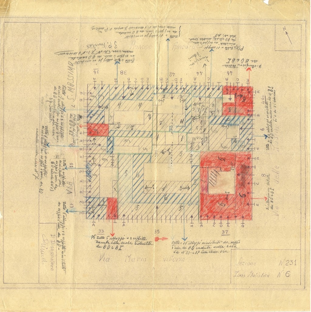 Bombardamenti aerei. Censimento edifici danneggiati o distrutti. ASCT Fondo danni di guerra inv. 231 cart. 4 fasc. 21. © Archivio Storico della Città di Torino